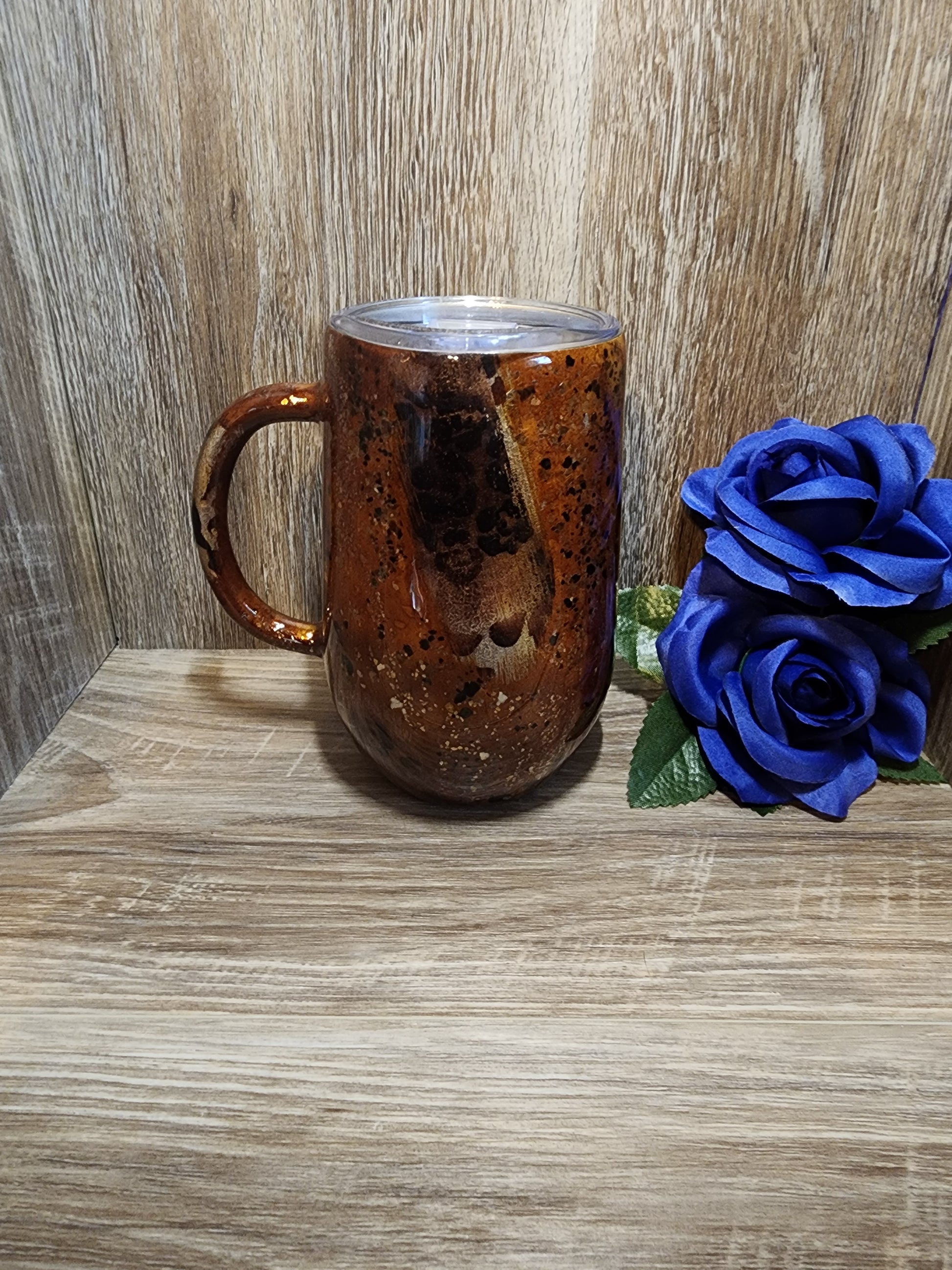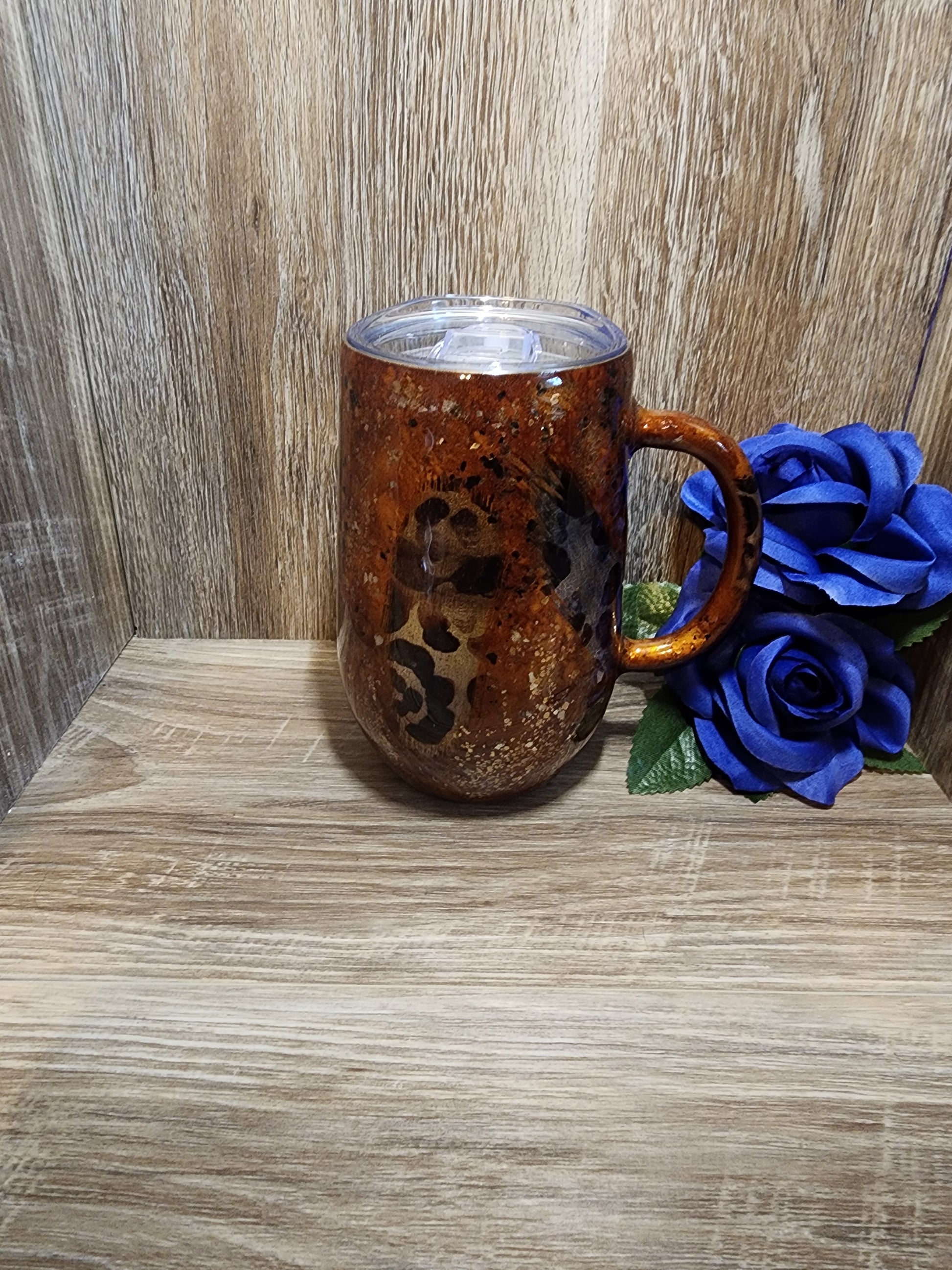 16 oz coffee cup tumbler with brown, metallics, some glitter and animal print foil.