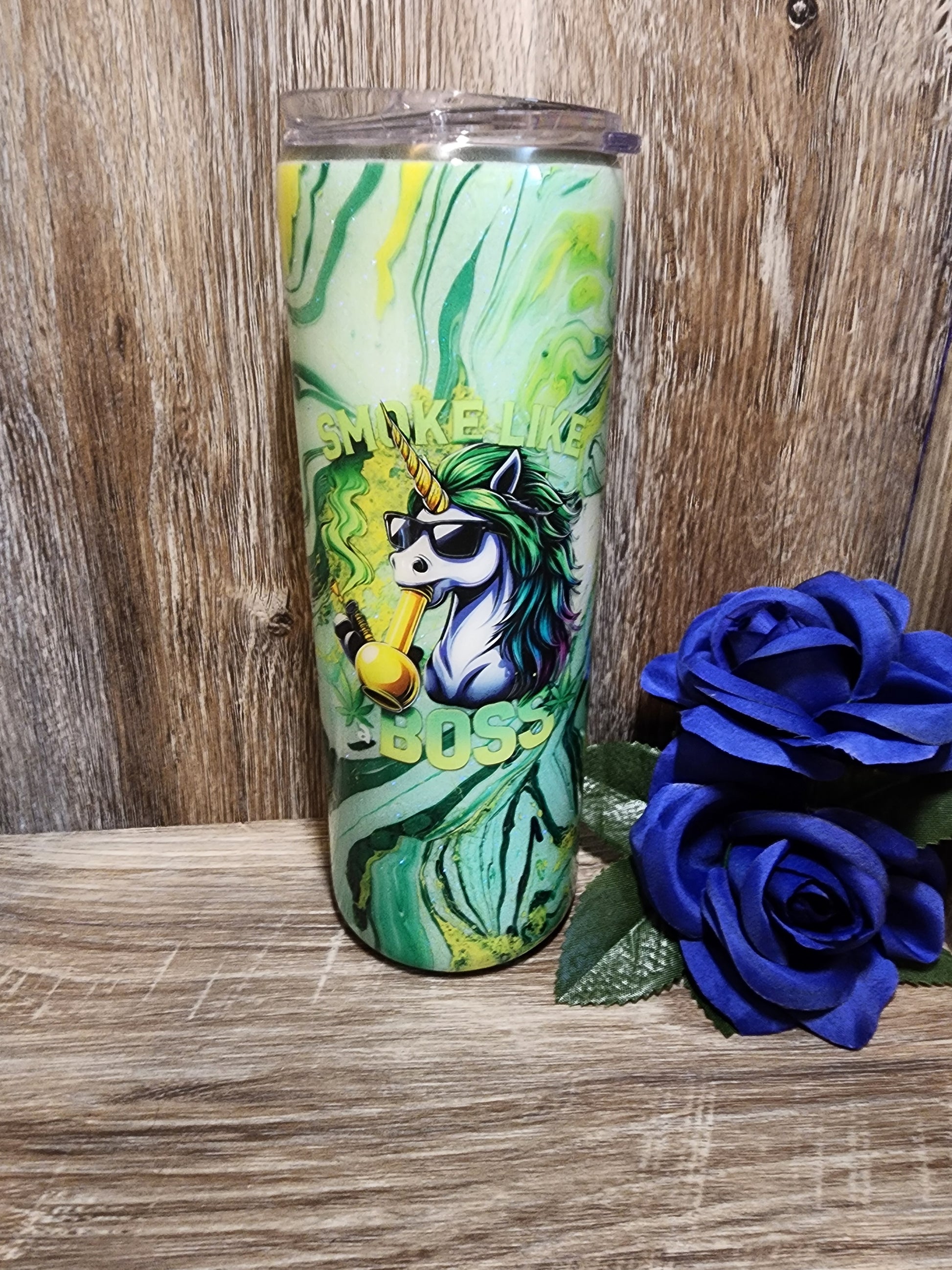 Glitter and hydro dip with decal on a 20 oz slim tumbler