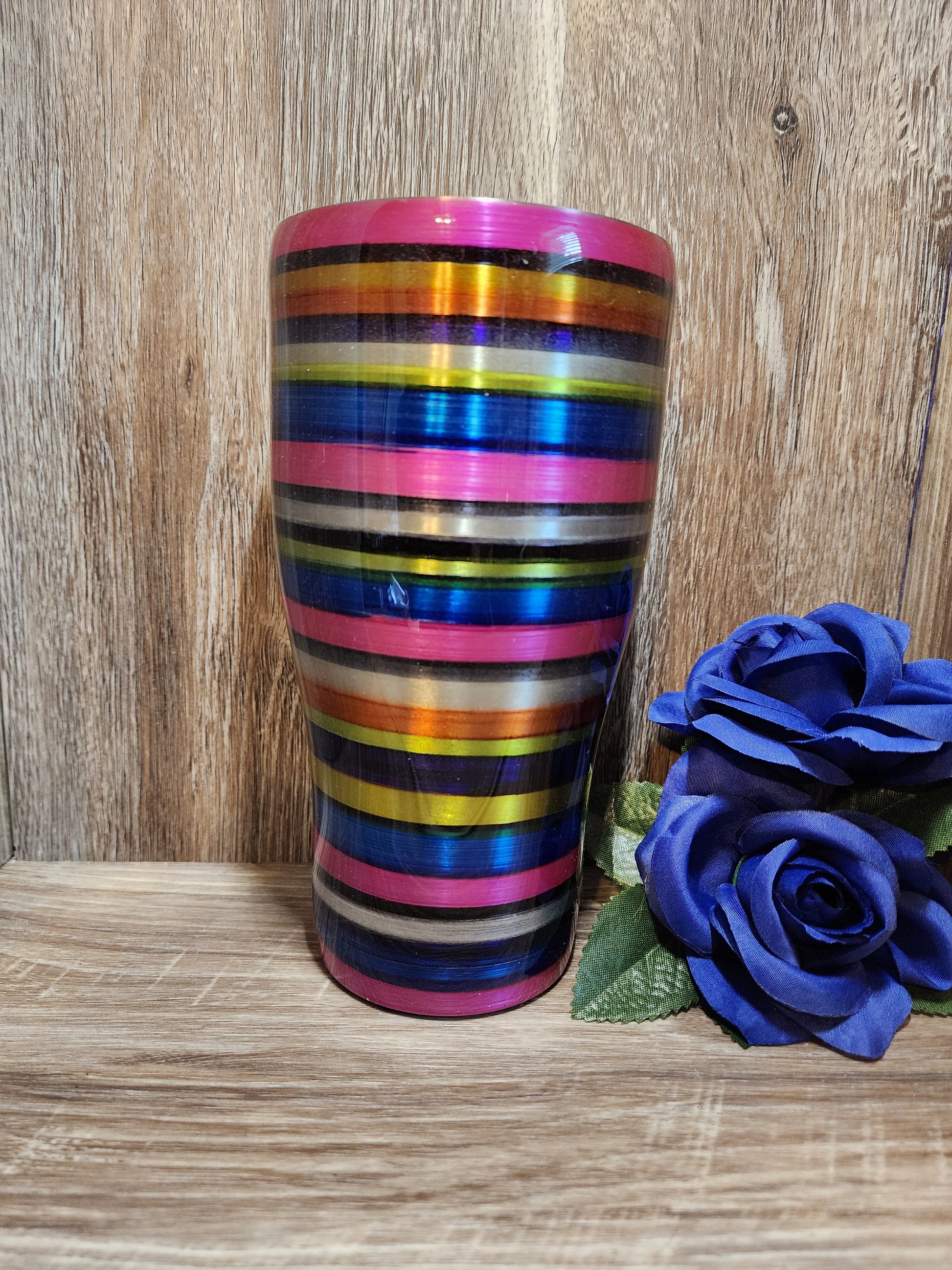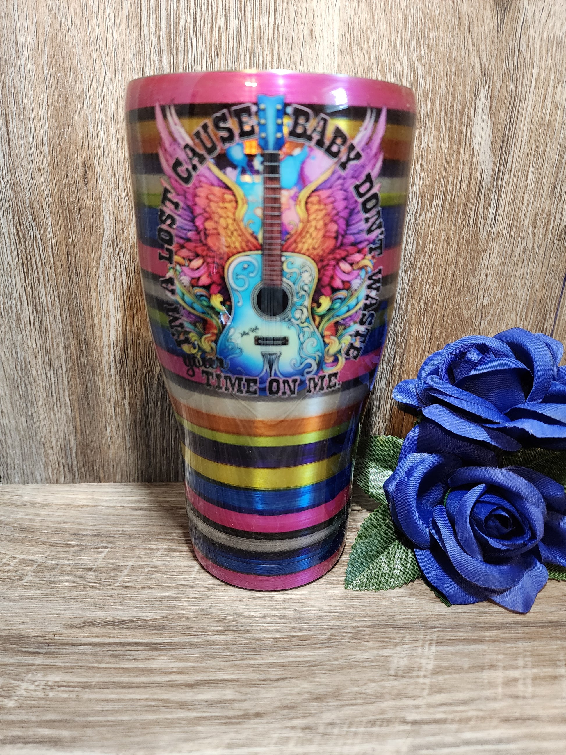 30 oz modern curve with metallic and ink stripes. "Don't waste your time on me" decal