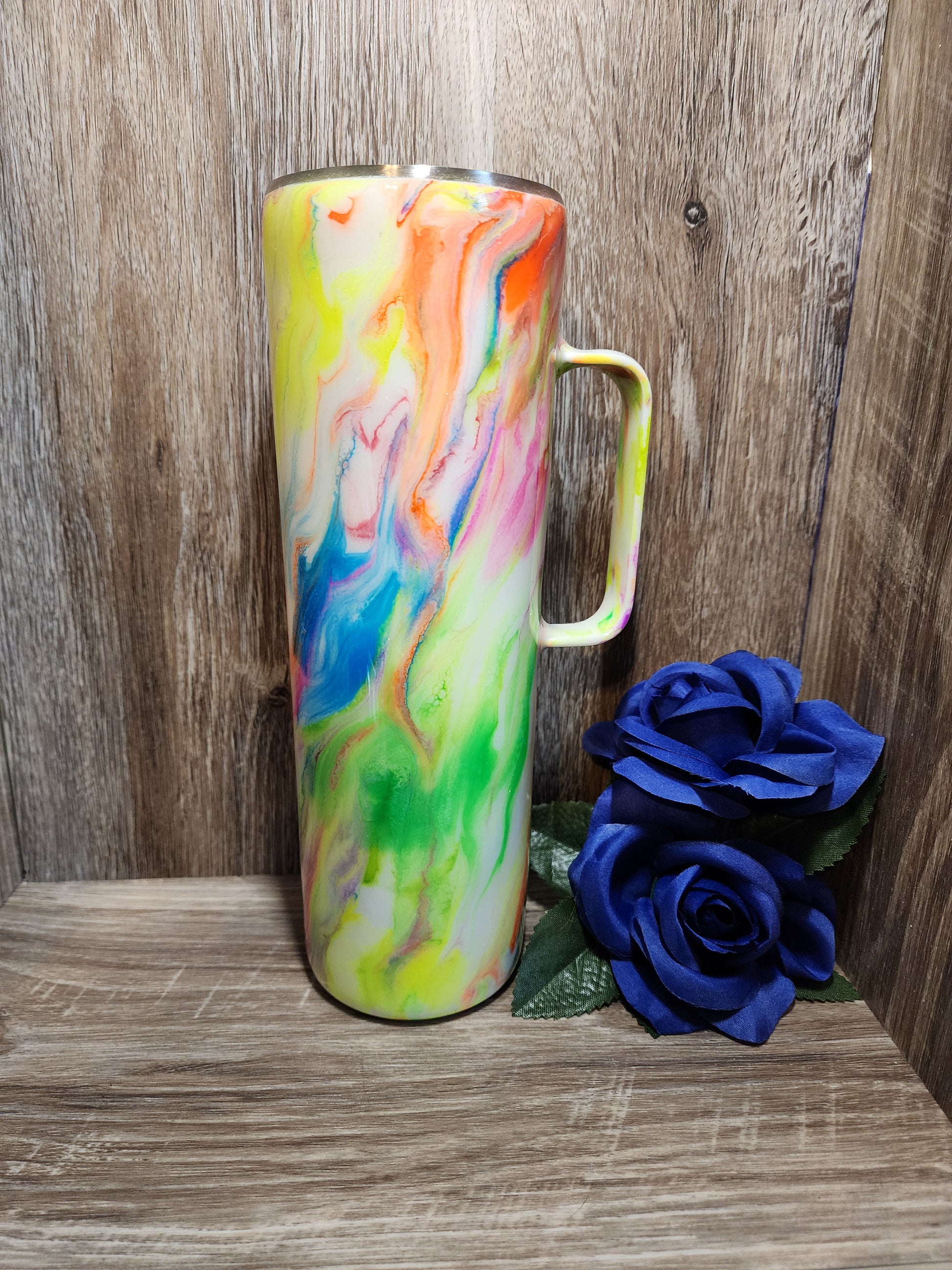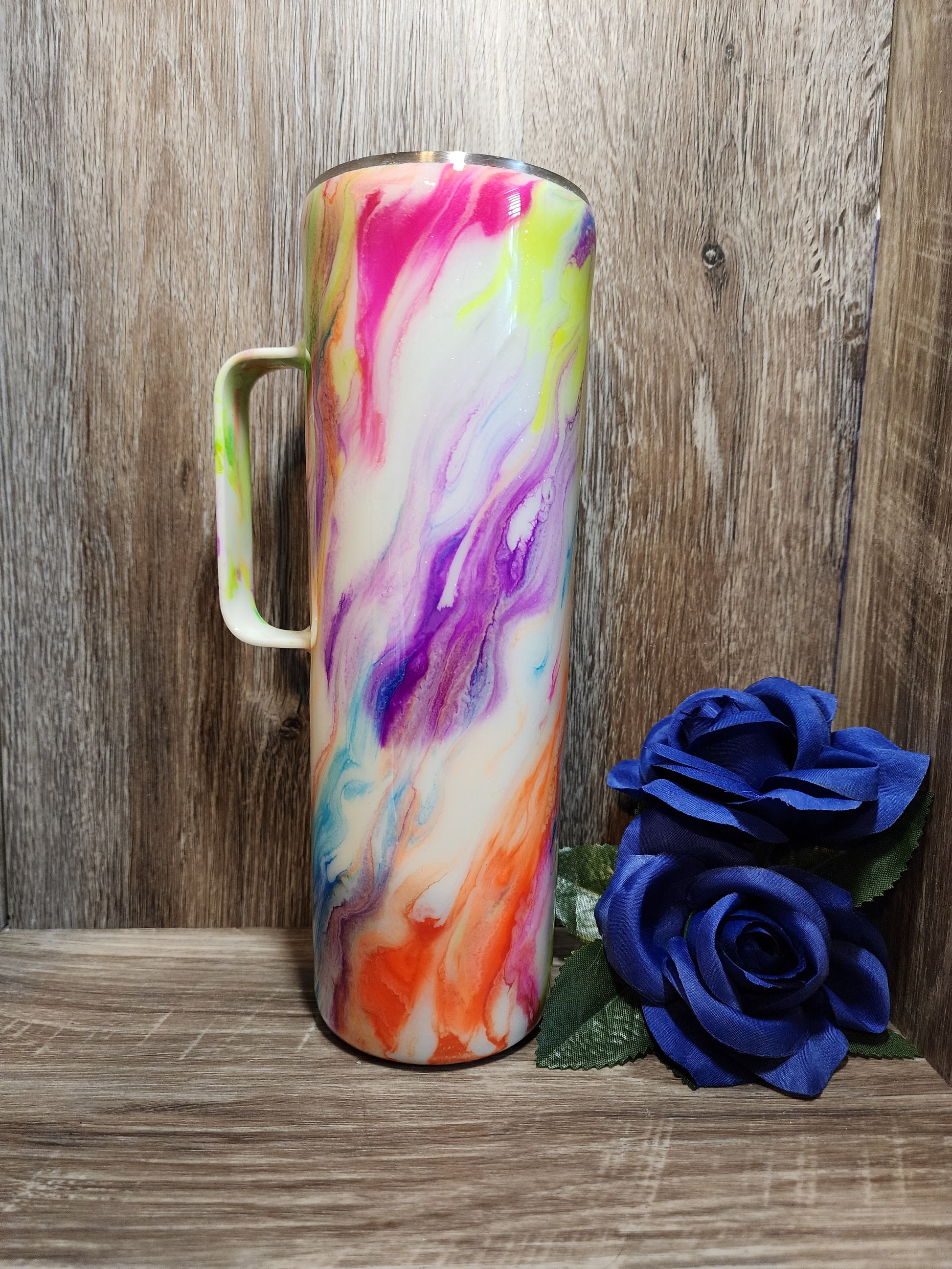 30 oz skinny with handle. Neon striped