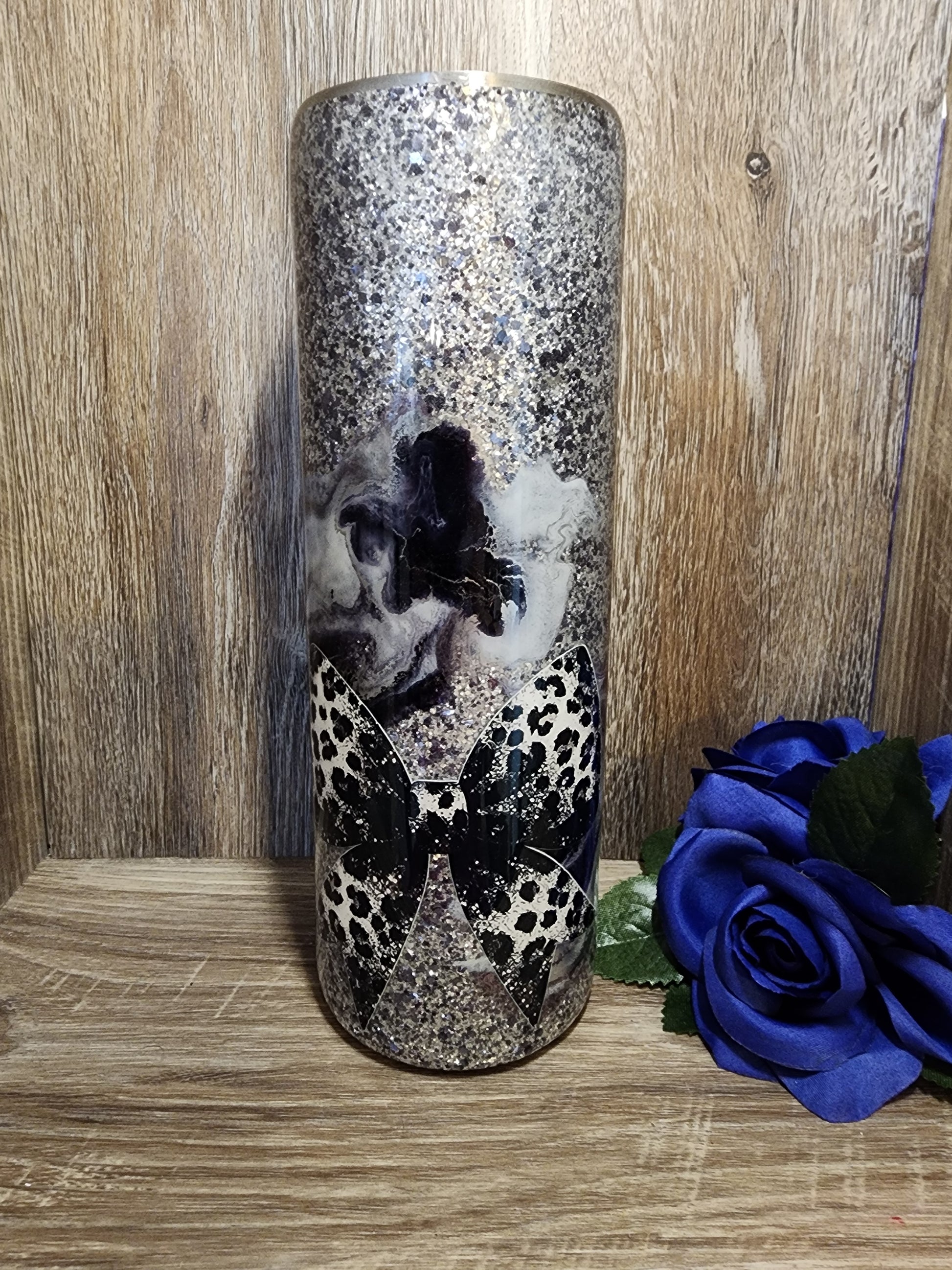 Beautiful glitter base with ink swirl and decals