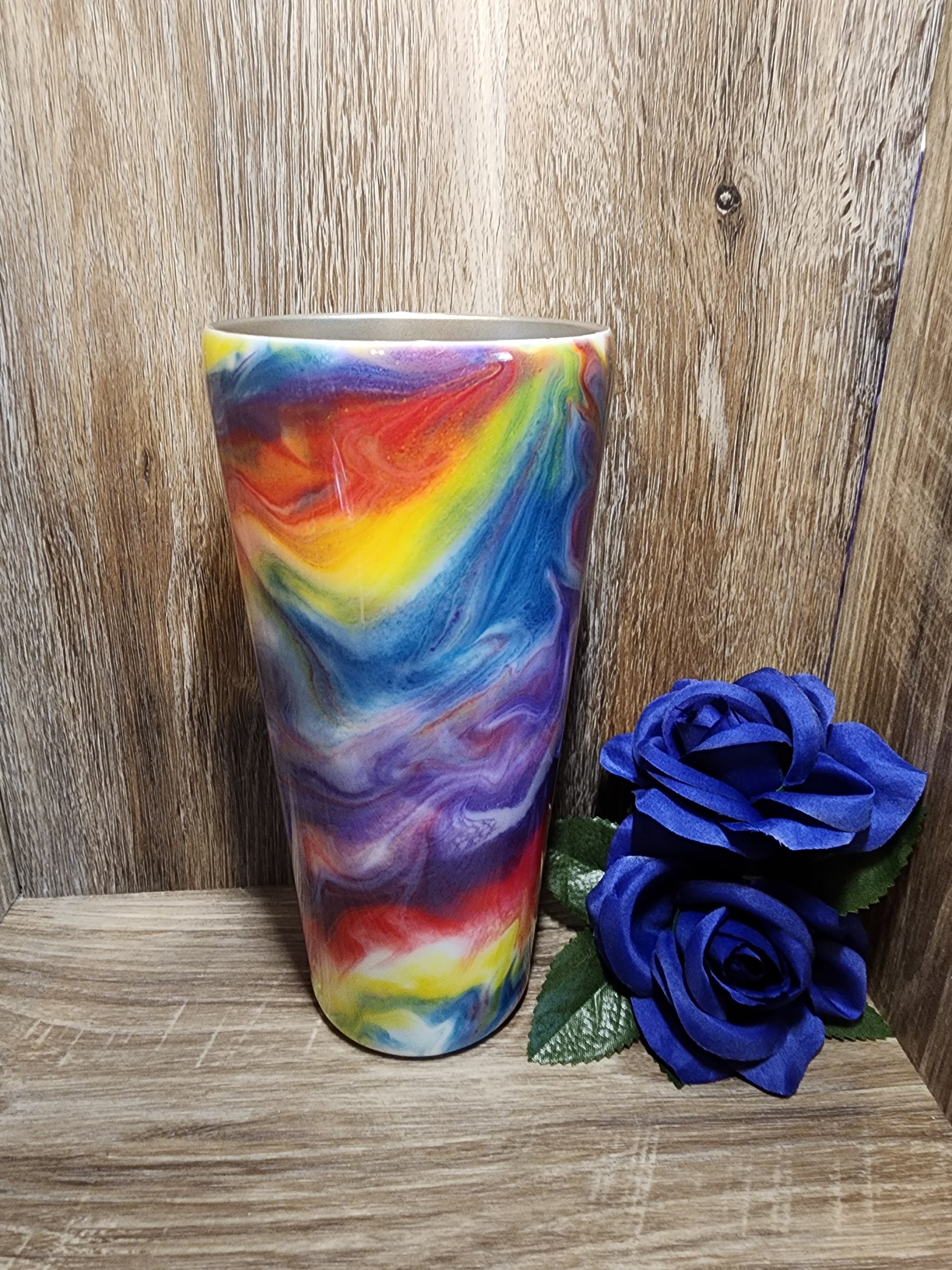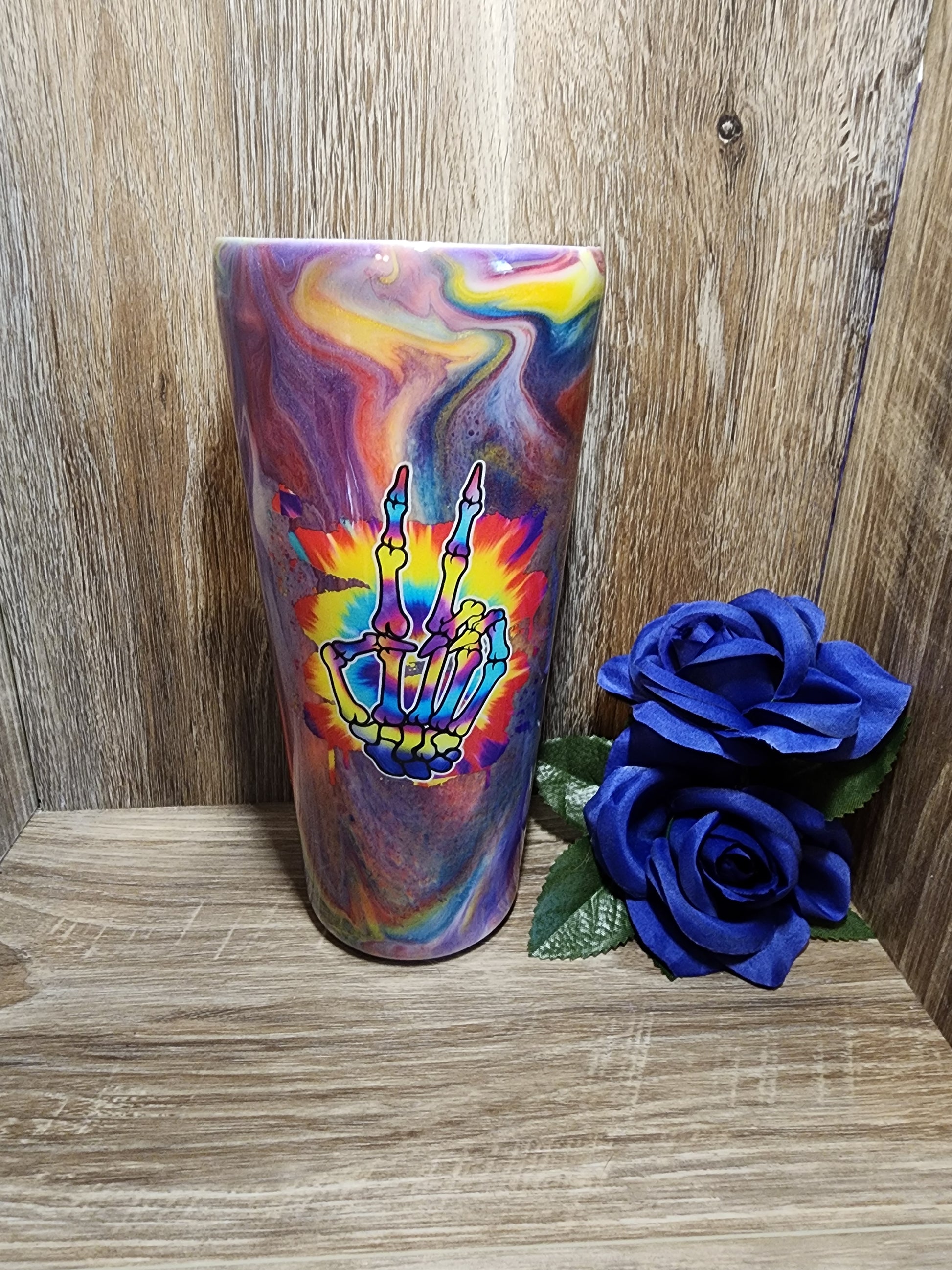 32 oz tumbler with neons and peace decal